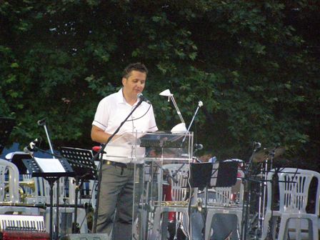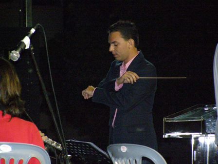 Λόγω ανειλημμένων υποχρεώσεων του αρχιμουσικού Δημητρίου Τσιαβέ, τη διεύθυνση της Φιλαρμονικής και της Ορχήστρας Ποικίλης Μουσικής αναλαμβάνει απόψε ο αρχιμουσικός κ. Λάζαρος Μπίσμπας. Ευχαριστώ πολύ, καλή ακρόαση».