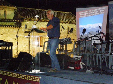 Όπως αντιλαμβάνεστε, αυτό που προσπάθησα να κάνω με αυτό το βιβλίο ήταν η ανασύνθεση και η καταγραφή της αδιάλειπτης ιστορίας του τόπου μας. Αν το κατάφερα ή όχι, επαφίεται στην κρίση των αναγνωστών. Εύχομαι, οι περισσότεροι από εσάς, αν όχι όλοι, να απολαύσετε το ταξίδι αυτού του βιβλίου μέσα στο χρόνο, κάνοντας το άλλο μισό ως αναγνώστες. Ελπίζω να μας δοθεί η δυνατότητα να ανταλλάξουμε απόψεις πάνω σε οποιοδήποτε θέμα. Πριν κλείσω την ομιλία μου, θα ήθελα να ευχαριστήσω κατ’ αρχάς τους γονείς μου Μαρία και Νίκο, στους οποίους άλλωστε είναι αφιερωμένο το βιβλίο, ως ελάχιστη αναγνώριση για όλα όσα έκαναν για μένα. Όλους τους φίλους και φίλες που βοήθησαν στη συγγραφή, τον εκδότη και καθηγητή μου κύριο Ράπτη Γεώργιο, το Τοπικό Συμβούλιο και τον πρόεδρο κύριο Παναγιώτη Τσακνάκη, όλα τα μέλη του δημοτικού συμβουλίου και κυρίως το Δήμαρχο κύριο Γιώργο Γαλάνη, που χωρίς τη δική του επιμονή και υπομονή αυτό το βιβλίο δεν θα είχε δημοσιευτεί. Βέβαια η προσπάθεια και το έργο μόλις άρχισαν. Σας υπόσχομαι πως θα συνεχίσω την έρευνα της μακραίωνης ιστορίας μας και πιο συγκεκριμένα, το επόμενο βήμα θα είναι η καταγραφή του τοπιού γλωσσικού ιδιώματος. Σας ευχαριστώ πολύ για την προσοχή σας και εύχομαι σε όλους σας μία όμορφη μουσική βραδιά».