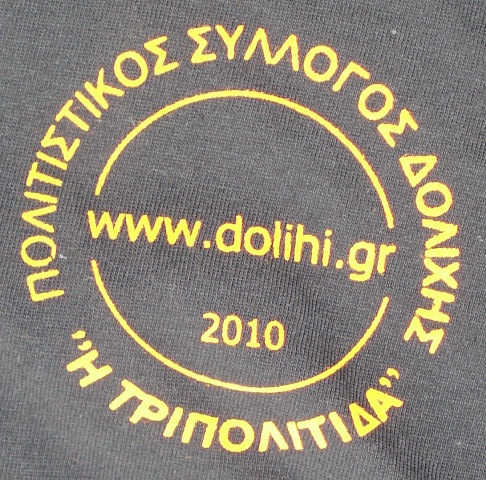 Για το πανηγύρι 5-6 Αυγούστου, θα δοθούν στους εθελοντές του Πολιτιστικού Συλλόγου Δολίχης αναμνηστικά μπλουζάκια. Έχουν μαύρο χρώμα και την ένδειξη dolihi.gr στην πλάτη, μιας και το dolihi-lar.gr μετατράπηκε σε dolihi.gr. Στην μπροστινή όψη (καρδιά) φέρουν το σήμα του Πολιτιστικού Συλλόγου.