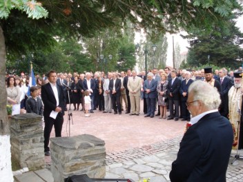 Ακολούθησε, παρουσία της Φιλαρμονικής του Δήμου Ελασσόνας, η επιμνημόσυνη δέηση στον Ανδριάντα του Γ. Ολυμπίου, στο Κιόσκι, και η κατάθεση στεφάνων από τους κάτωθι: