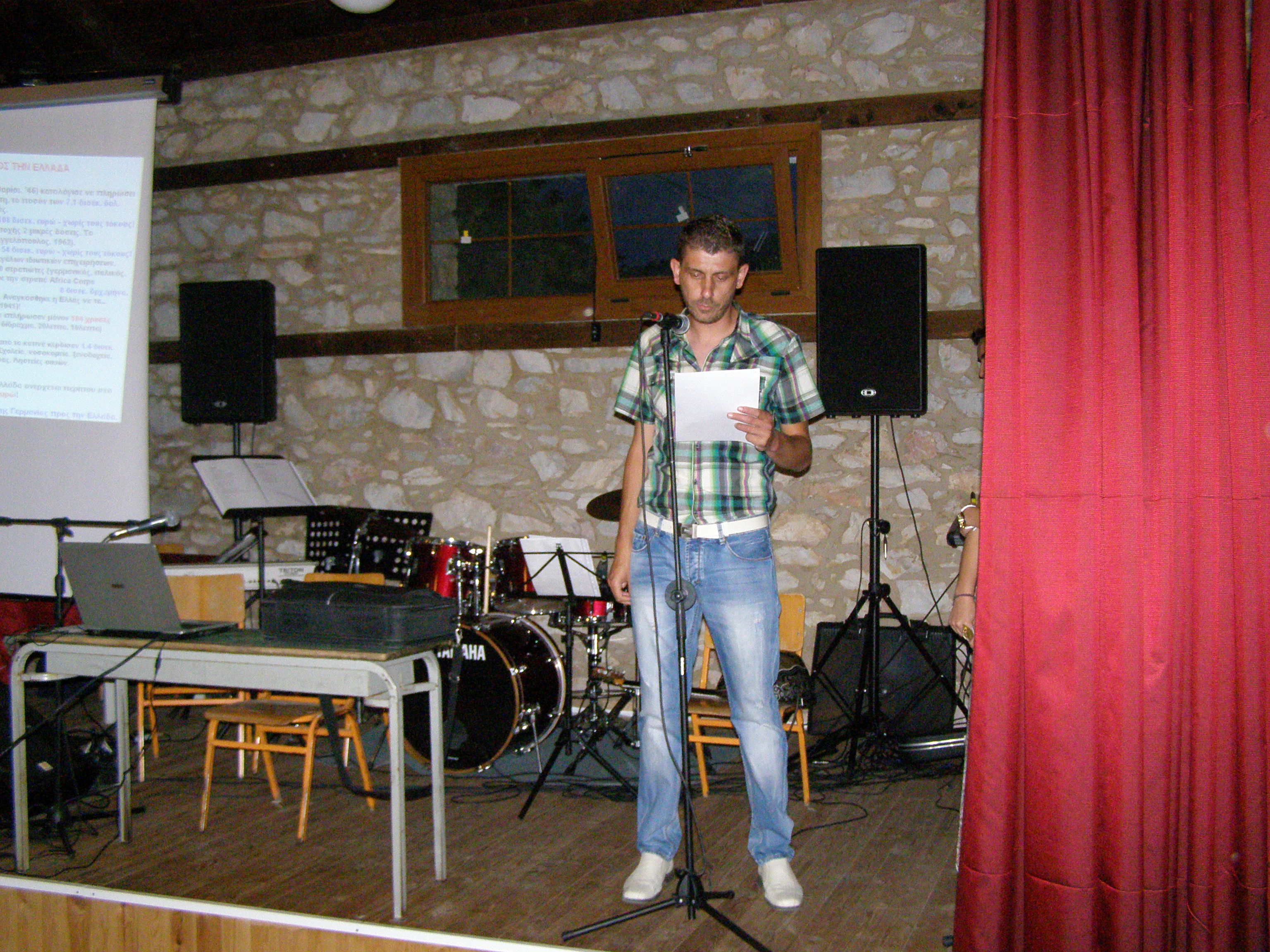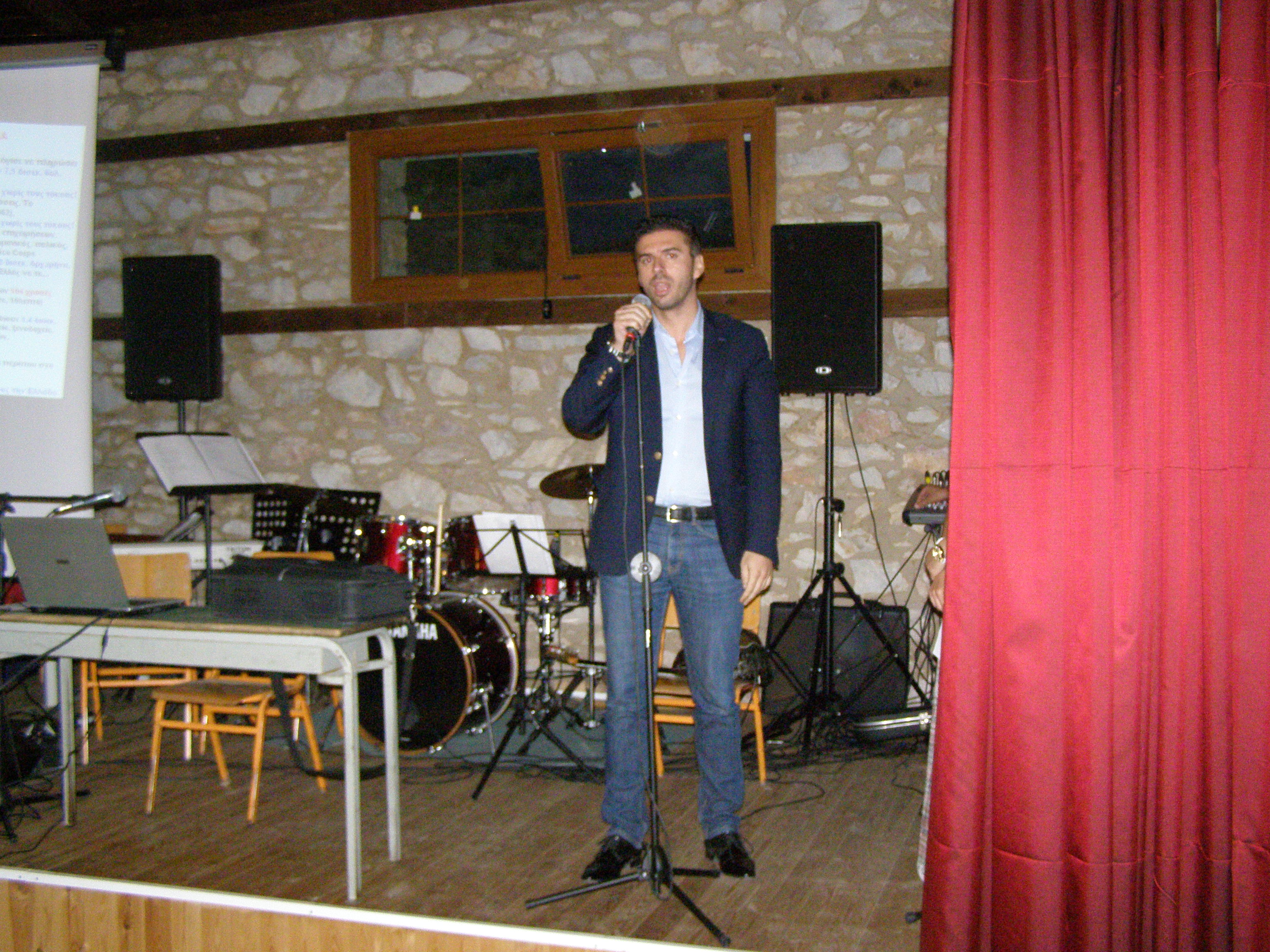 Ακόμα ευχαρίστησε τον κεντρικό ομιλητή της εκδήλωσης τον δημοσιογράφο κ. Λεκάκη Γιώργο και το μουσικό σχήμα του μαέστρου Τσιαβέ Δημήτρη που πλαισιώνει την εκδήλωση.