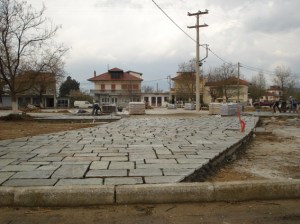 Στην κεντρική πλατεία της Δολίχης γίνονται οι εργασίες για την ανάπλαση της.