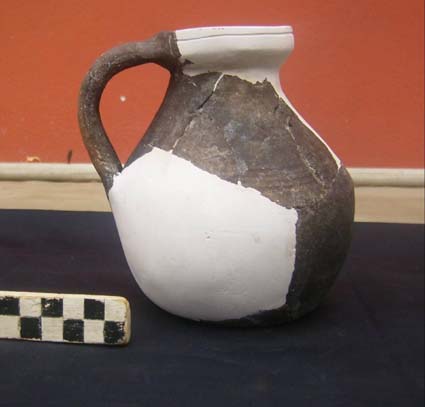 Η περισυλλεγείσα κεραμεική ανήκει κυρίως σε αγγεία καθημερινής χρήσης οινοχόες, χύτρες, πινάκια, αμφορείς, πίθους, χωρίς να λείπουν φυσικά και αγγεία του τύπου terra sigillata, κυρίως πινάκια, καθώς και ένα στόμιο από πήλινη ευλογία που ανήκει στον λεγόμενο μικρασιατικό τύπο, με το χαρακτηριστικό δισκοειδές σχήμα και το μικρό μέγεθος, το οποίο φέρει ανάγλυφες παραστάσεις). Βρέθηκαν, επίσης, και αρκετά ακέραια λυχνάρια, ένα με πέντε μύξες στο κτίσμα του αιθρίου, λύχνοι με εμπίεστη διακόσμηση σταυρού, ένας ακέραιος λύχνος, καθώς και μεγάλος αριθμός θραυσμάτων.